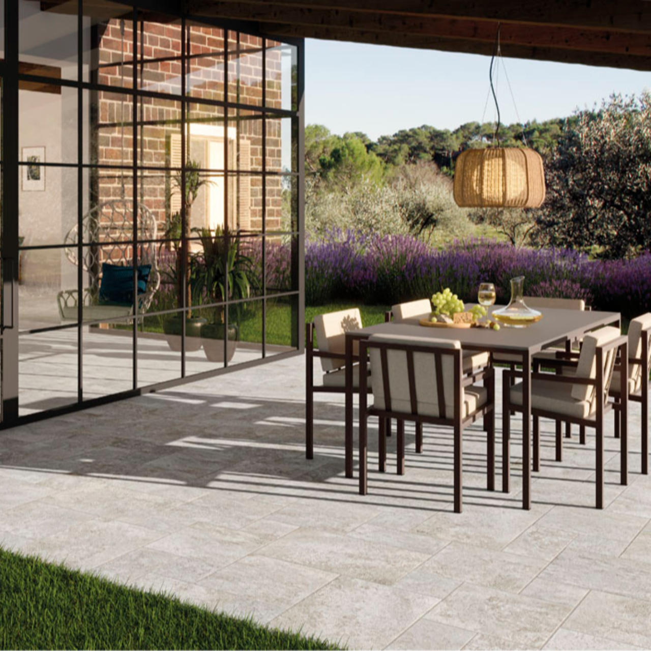 石材のような重厚感とランダムな表情が空間に奥行きを与え、エントランスやテラス、アプローチなど屋内外の壁面に個性豊かなアクセントを生み出します。防滑性に優れたグリップ仕上げで、外部床まわりにも安心して使用可能。