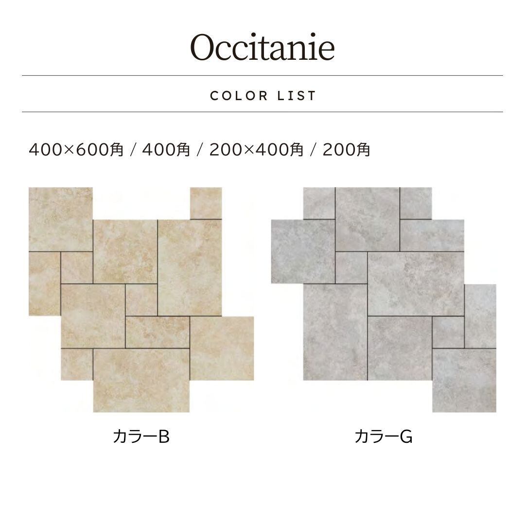 中世ヨーロッパ風デザインタイル Occitanie(オクシタニー)400×600角 / 400角 / 200×400角 / 200角 グリップ仕上げ【ケース販売/1.44㎡(4サイズ計12枚)入り】屋内外壁・エントランス 石調ミックス|全2色展開 | オンラインタイルショップ ラテラル ~LATERAL~