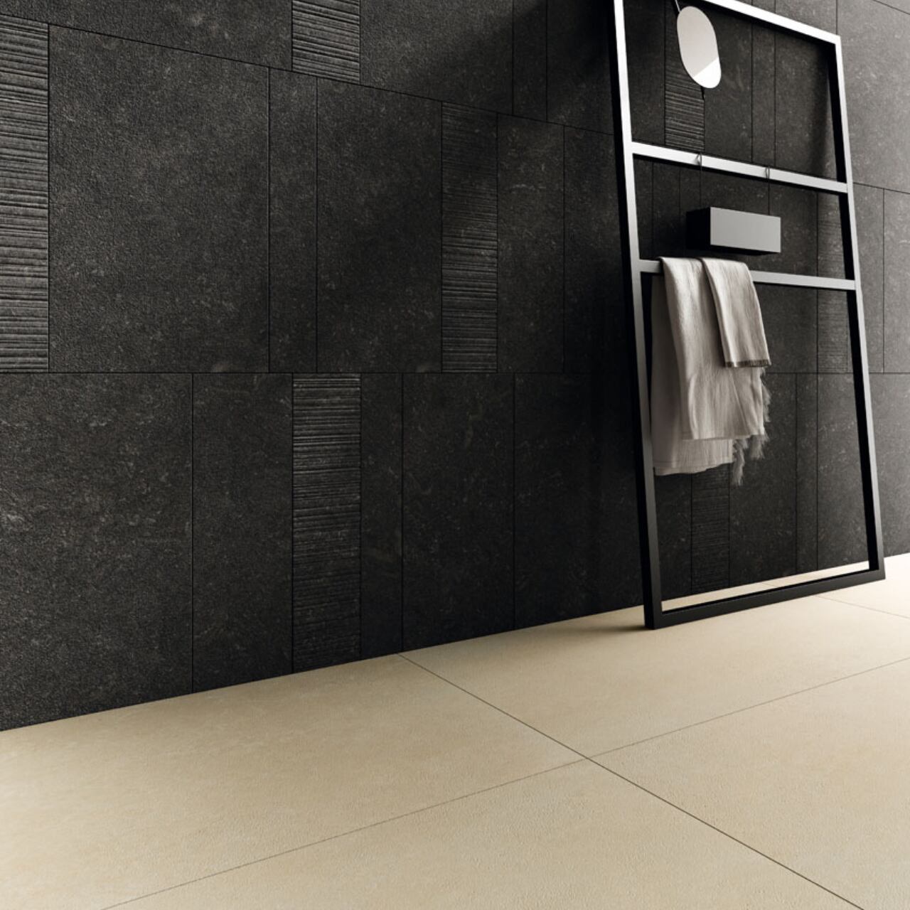 大判サイズのタイルが壁面・床面をスタイリッシュに演出し、ホテルライクなインテリアやリノベーションにも最適です。全3色展開で多彩なコーディネートに対応します。