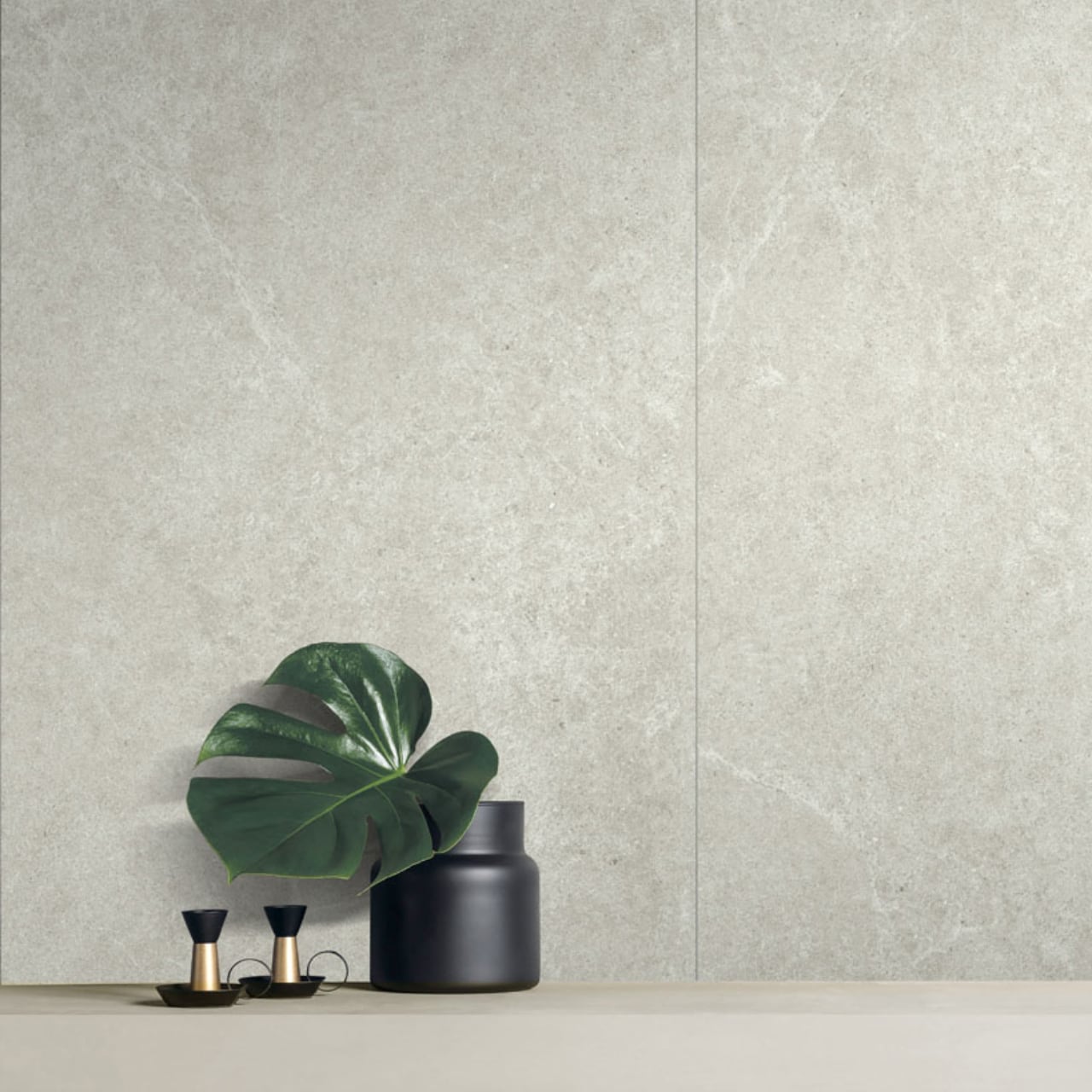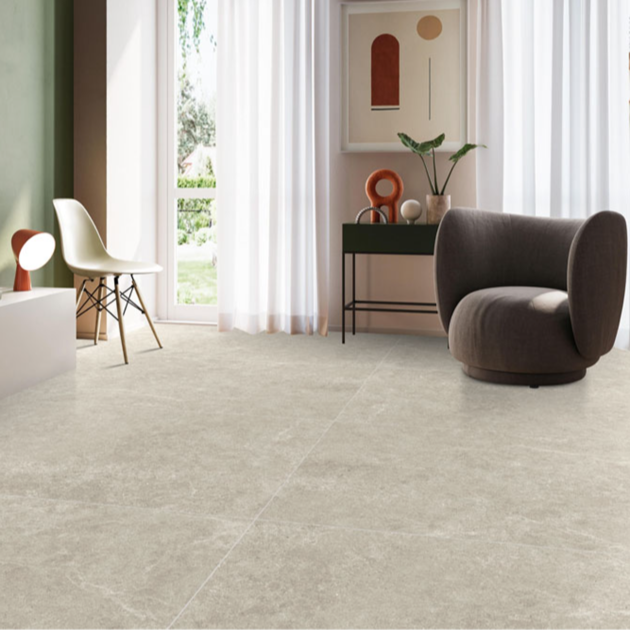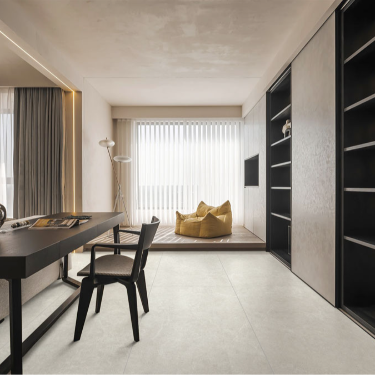 大判ならではの伸びやかな広がりと、控えめな陰影がモダンで洗練された印象を生み出します。住宅のリビングや玄関、店舗の壁面・床など、上質なインテリアを求める空間に最適。