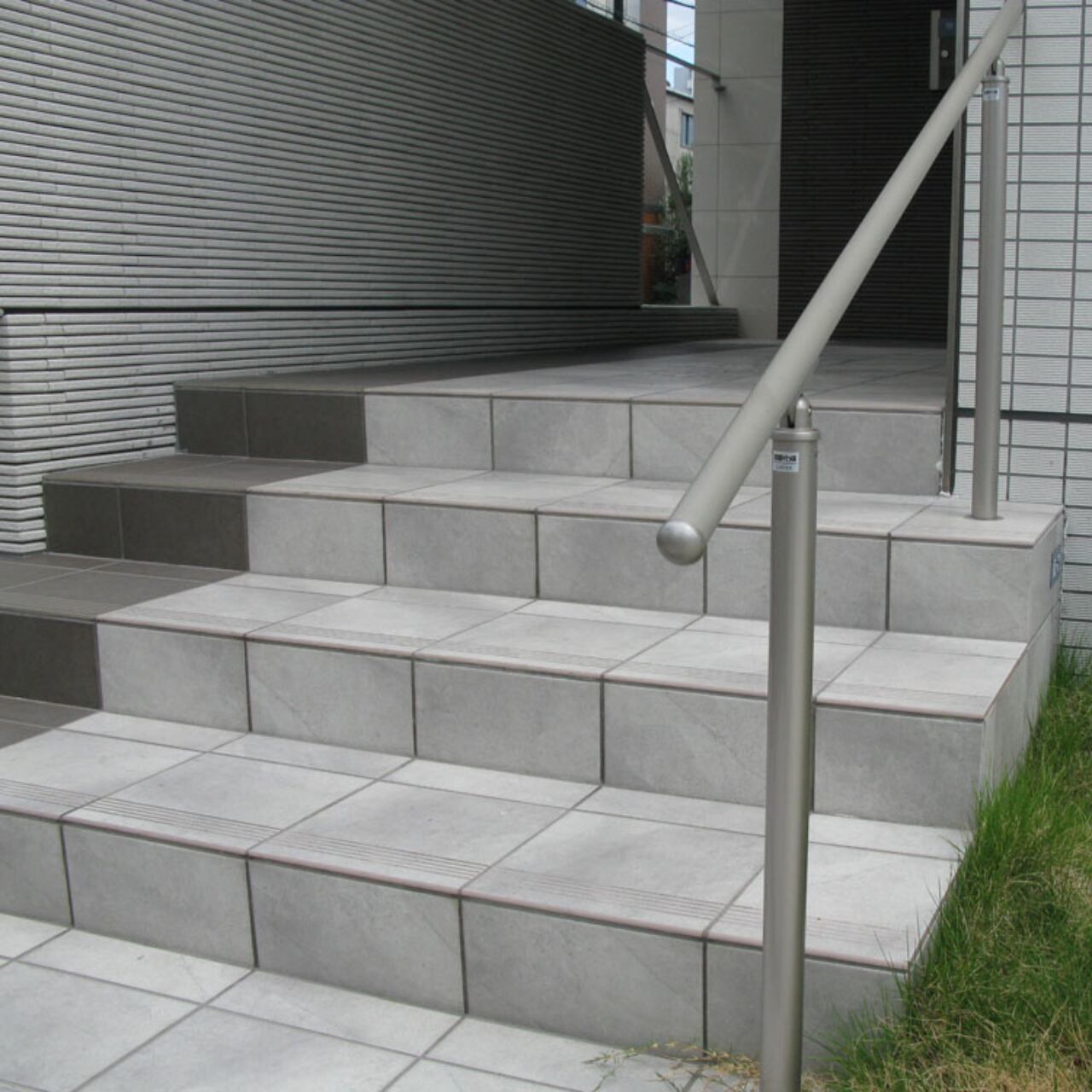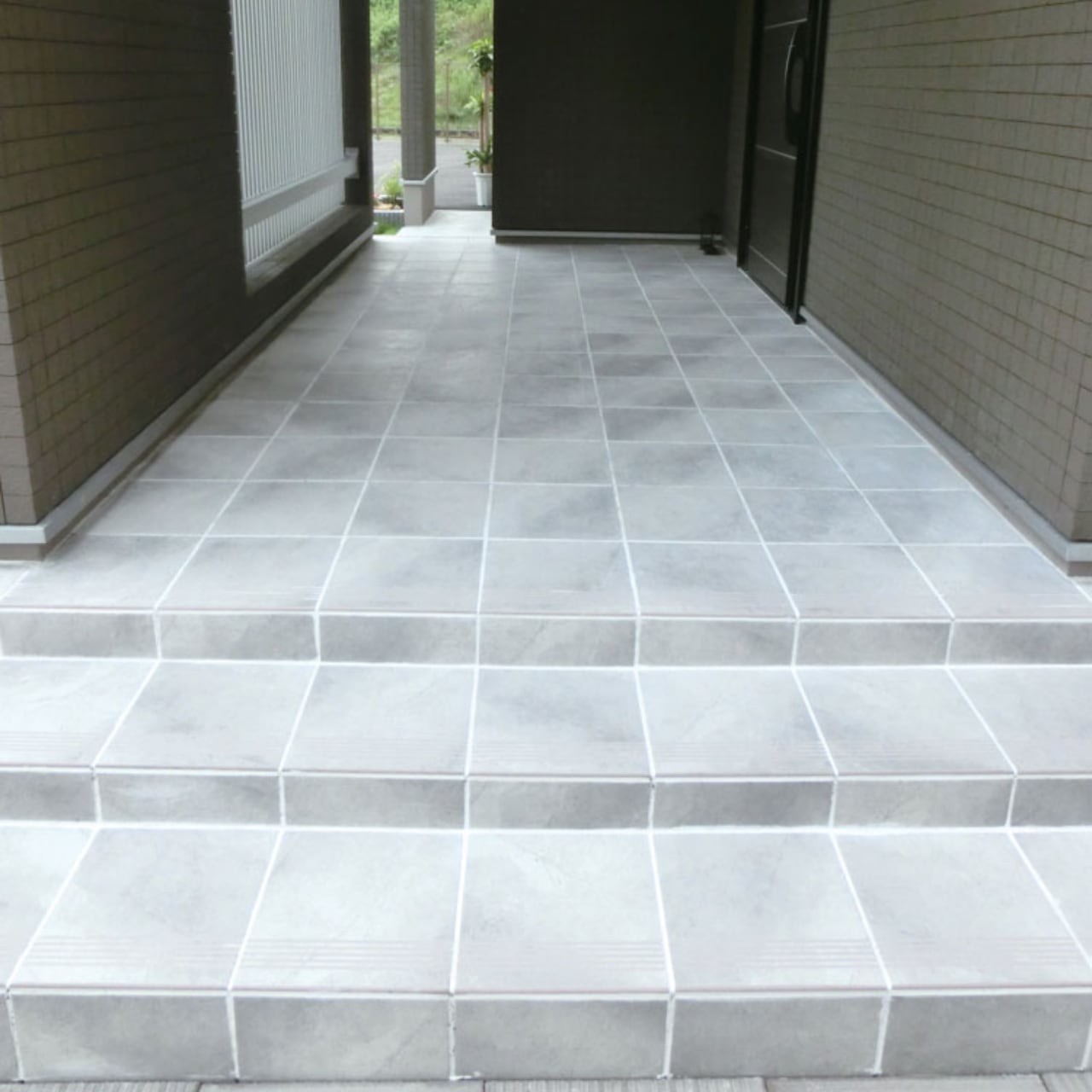 表面に特殊な砂をかけ、ざらつきを持たせた仕上げです。防滑性の高いタイルです。