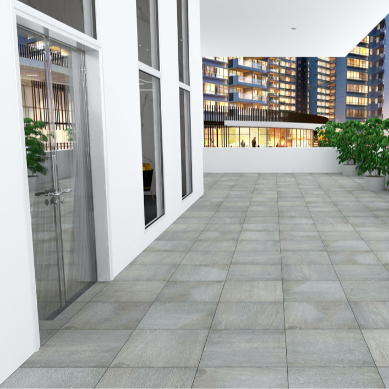 駐車場やテラスなど屋外床に最適で、高い防滑性と耐久性を兼ね備えています。天然石を思わせる豊かな色幅と質感が空間に重厚感を与え、住宅や商業施設の外構デザインに洗練された印象をプラスします。