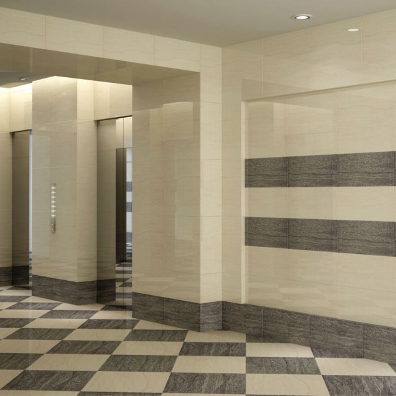 鏡のように磨き上げられた美しい輝きを放つタイル【Vatican Palladio】です。
