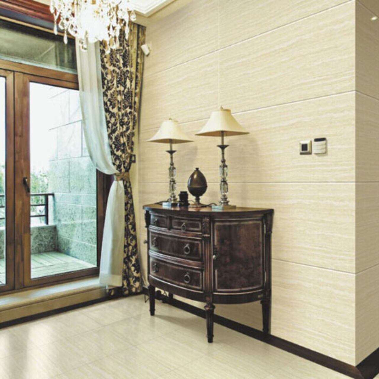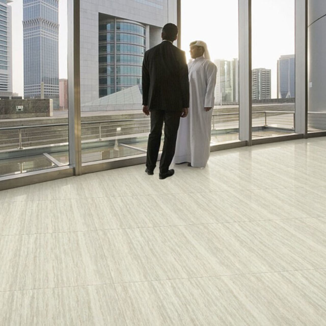 天然石の優美な紋様を最新のセラミック技術で忠実に再現した、磁器質タイル 。 鏡面のように磨き上げられた表面が光を美しく反射し、空間をより明るく、贅沢な印象へと導きます 。