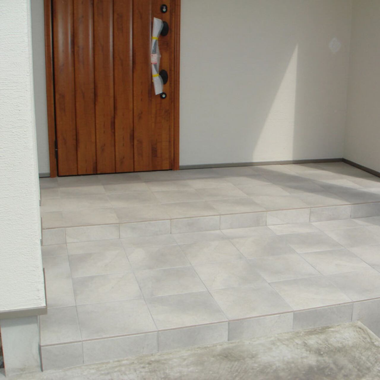 表面に特殊な砂をかけ、ざらつきを持たせた仕上げです。防滑性の高いタイルです。