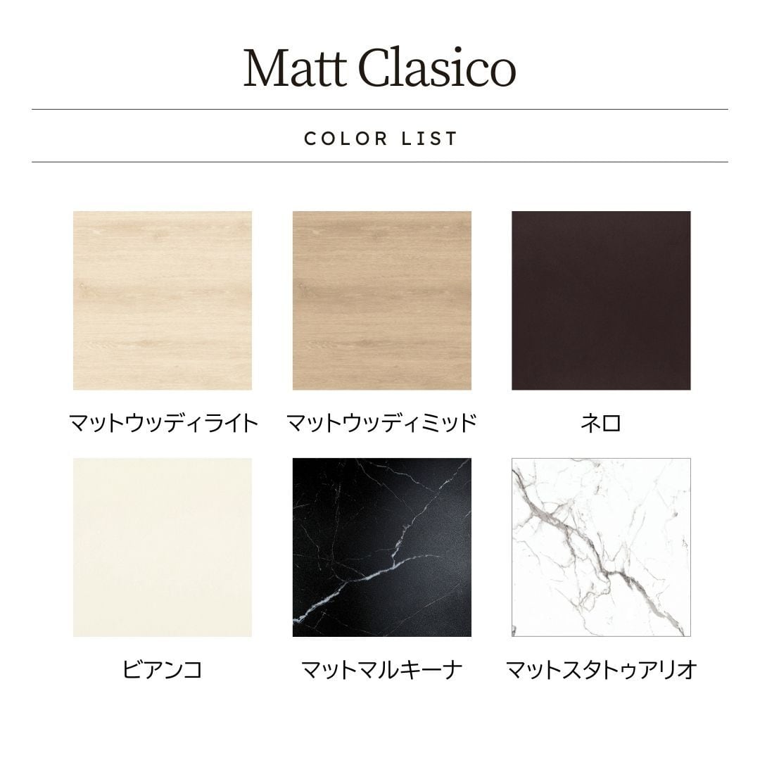 落ち着いた色味とマットな質感が空間を上品に演出するタイル【Matt Clasico(マット クラシコ)】です。
